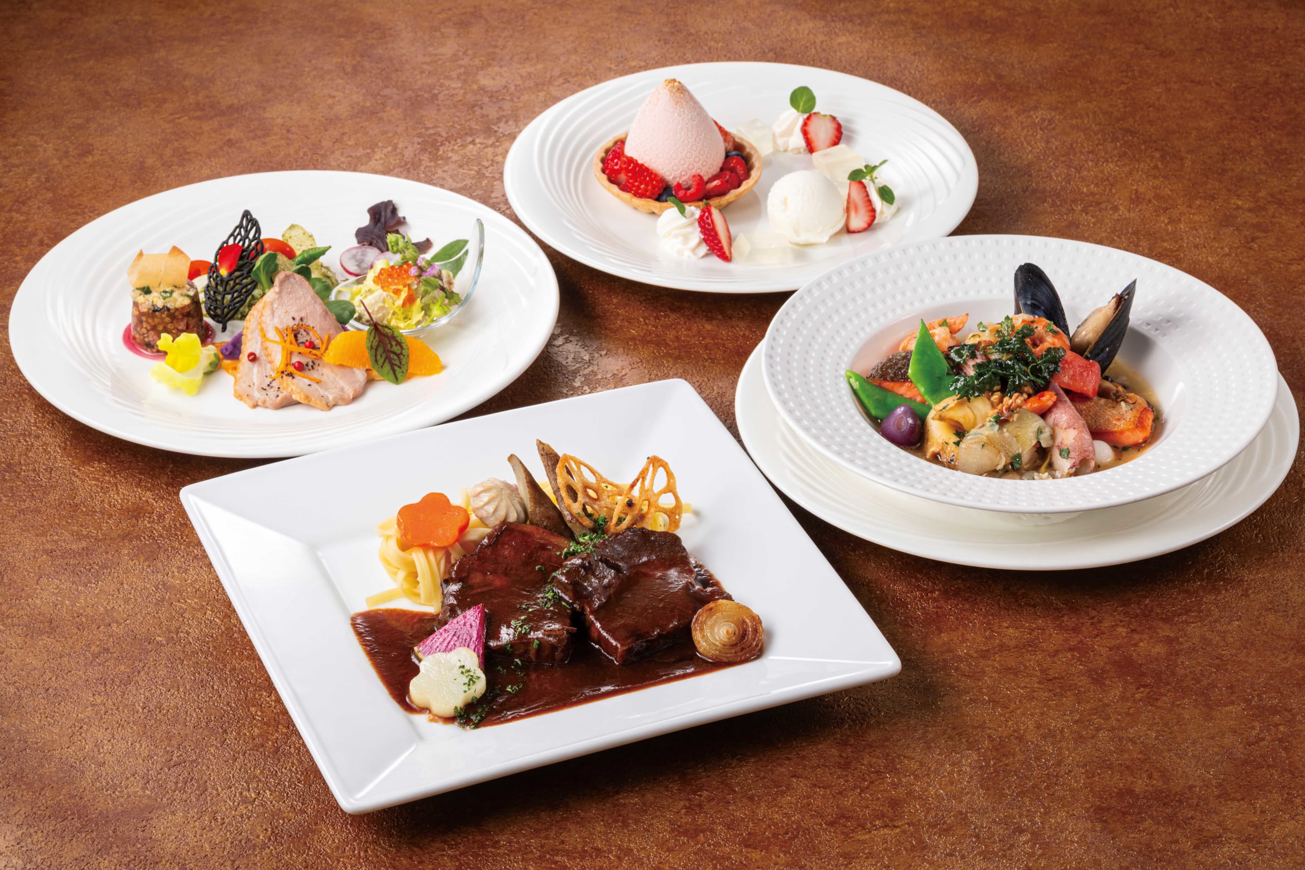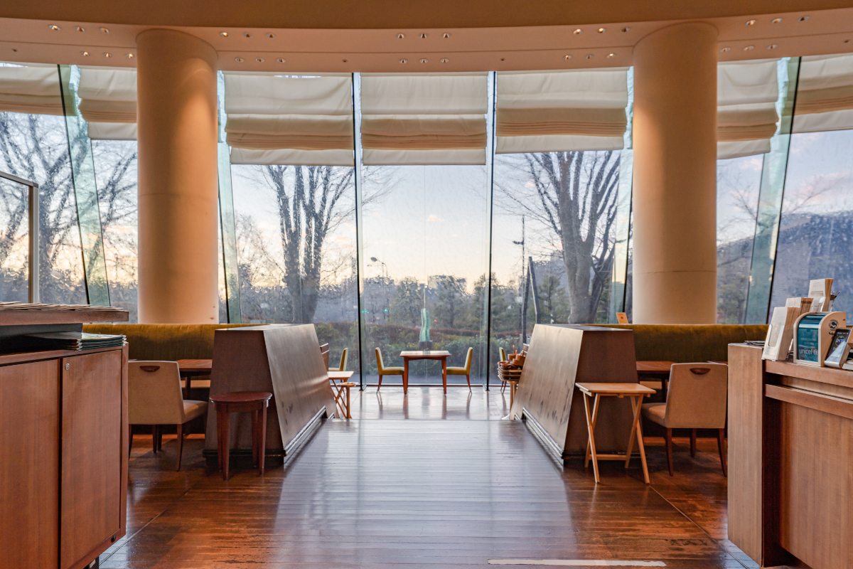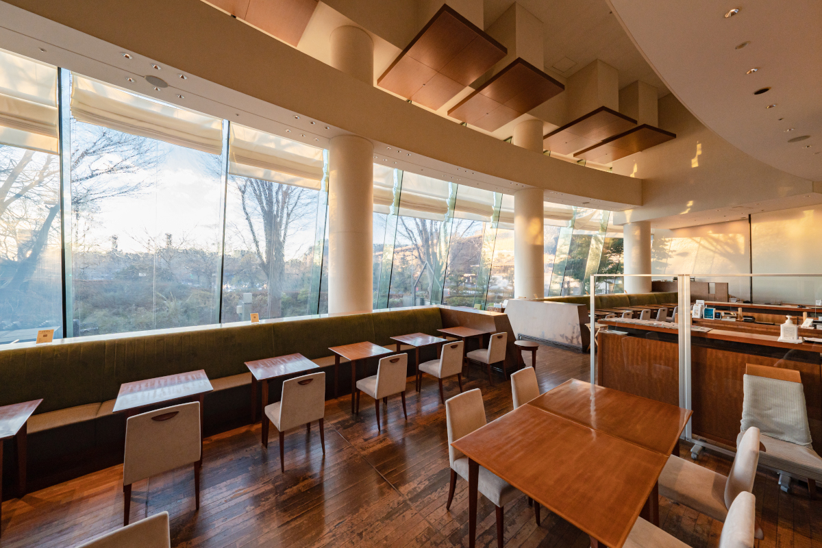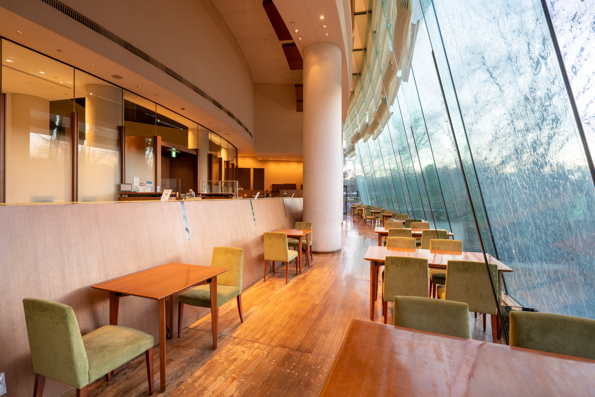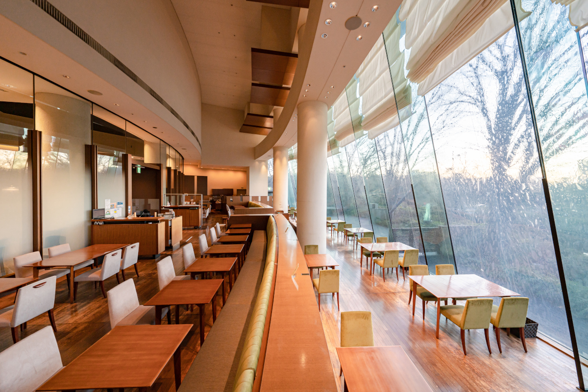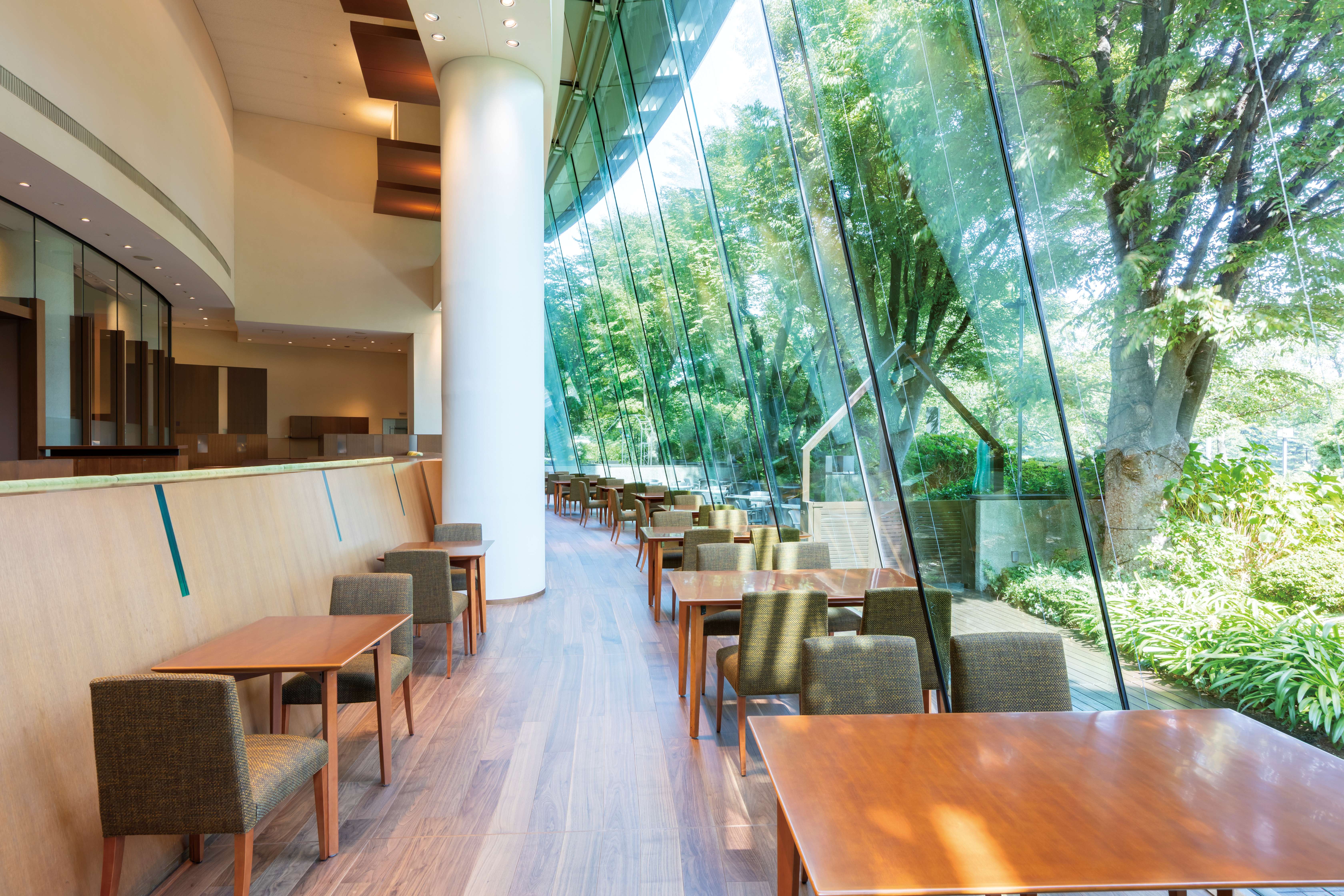 朝食からディナーまでご利用いただけるオールデイダイニング。店内は皇居の杜に面した大きな窓からあたたかな日差しを感じる開放的な空間です。帝国ホテルのお土産商品もお買い求めいただけます。