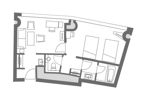 最上階に位置し、広々としたベッドルームと、快適なリビングルームを備えたお部屋です。