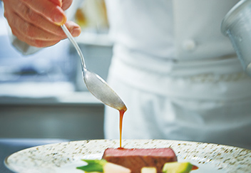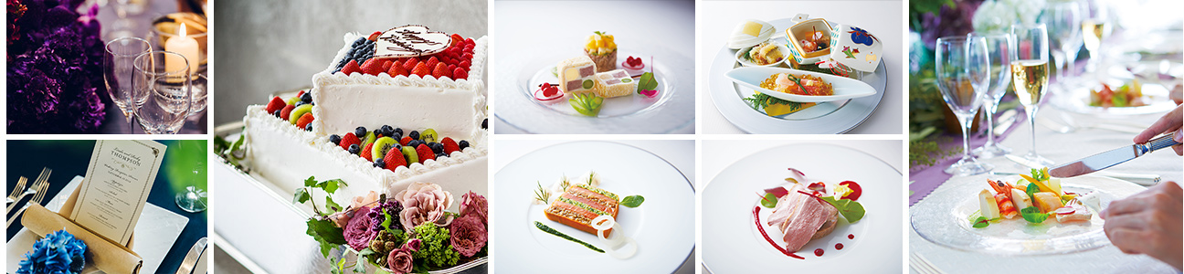 おふたりの思い出の料理やご出身地の食材、四季折々の素材を厳選し、世界に1つだけのフルコースを創りあげます。