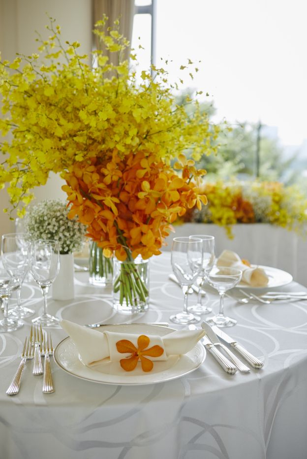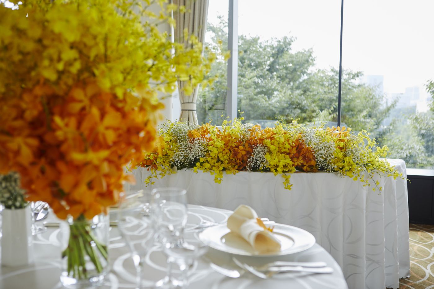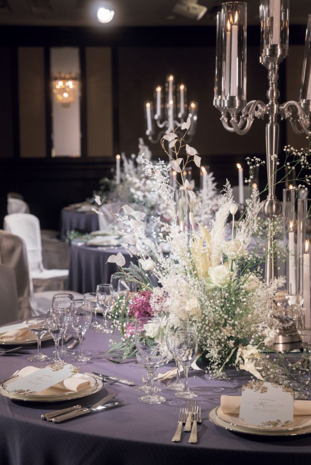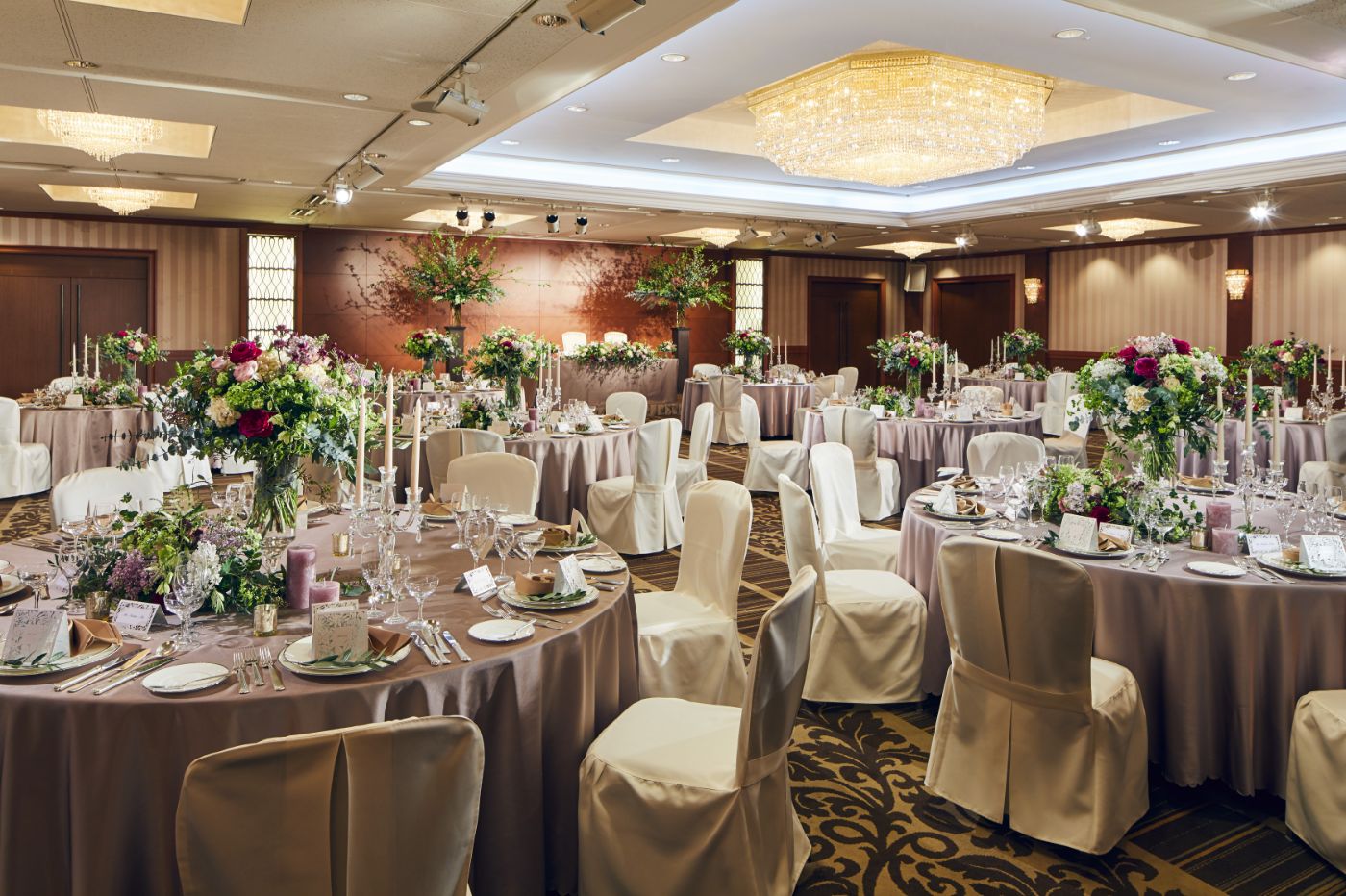 広々とした空間を生かしたダイナミックな装花はもちろん、希望のスタイルやゲストの人数に合わせてレイアウトも自由に組むことができます。