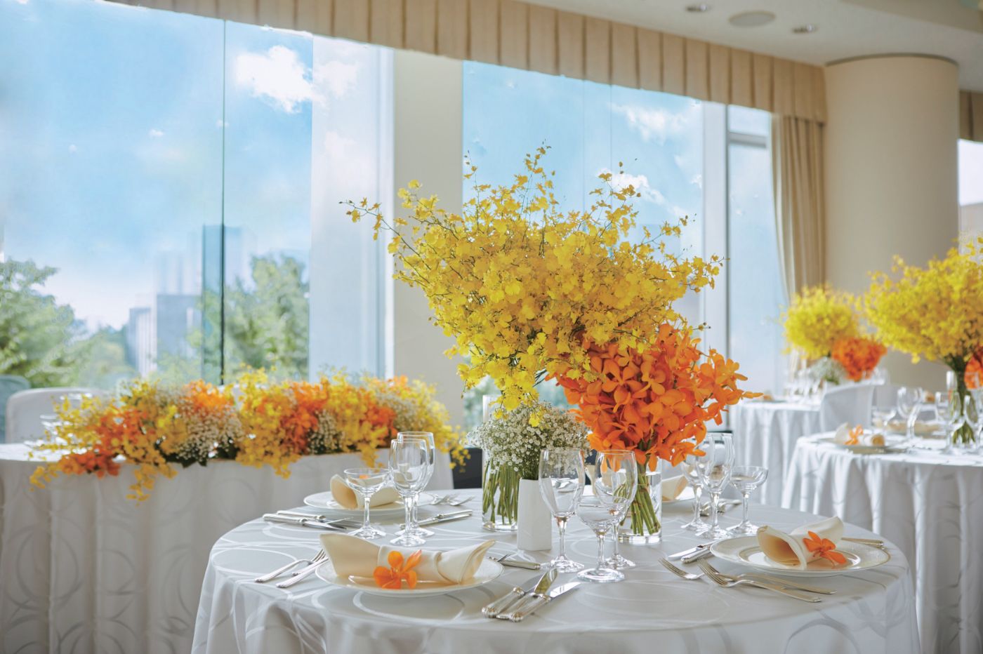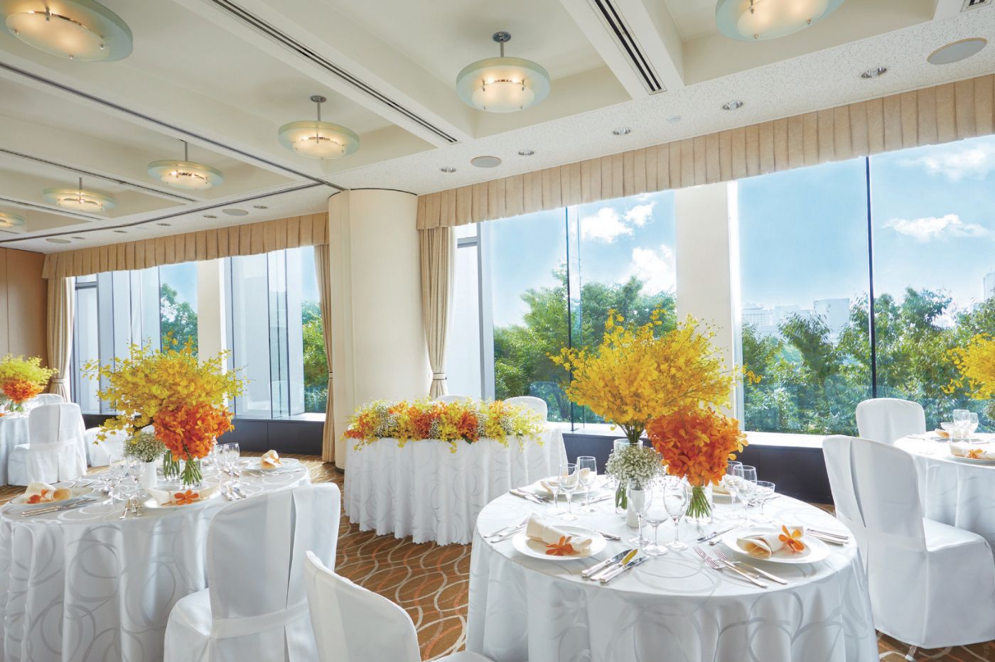 皇居の美しい杜が一望でき、豊かな緑と溶け合うような清々しさが広がるバンケットルーム。