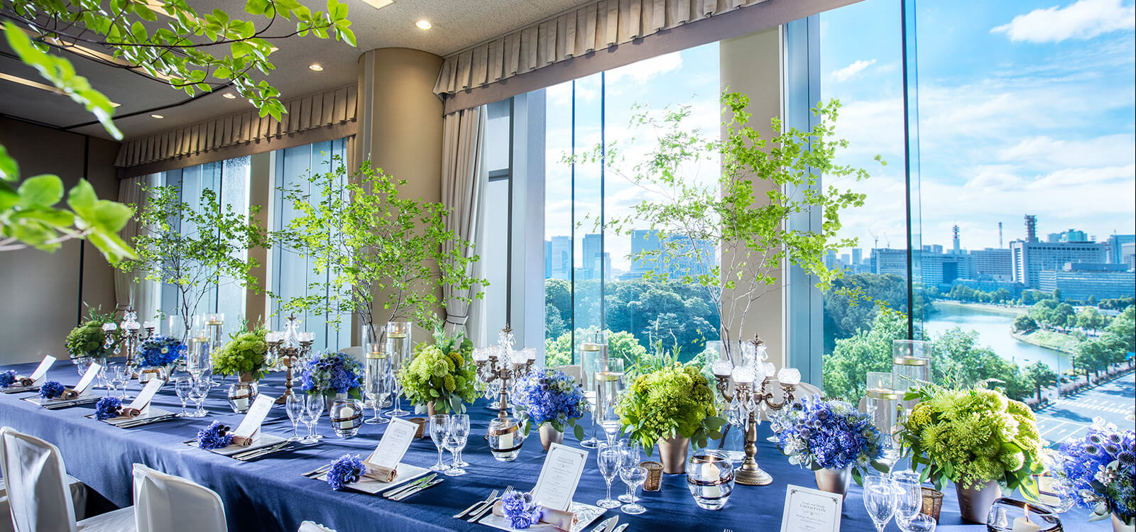 皇居の杜のあふれる緑と都会の街並みを眺めるバンケットルーム。
