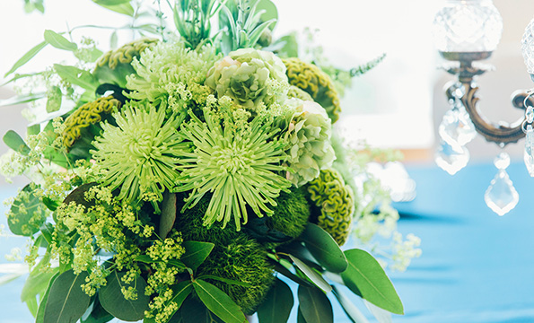 ガーデンパーティーを想わせる豊かな緑に恵まれた爽やかな印象の空間です。※着席/34名様まで